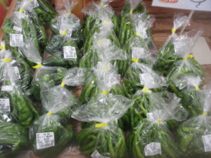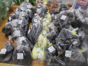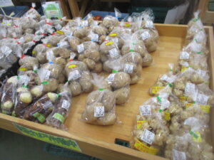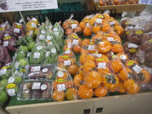 店内では本日も新鮮野菜を豊富に取り揃えている他、外売りコーナーでは新米、果物類を販売しております。
