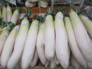 地元野菜では白菜、大根、ねぎ、里芋などを入荷中です。