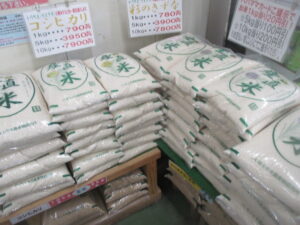 新米の他、しいたけ、里芋など地元農産物を販売中