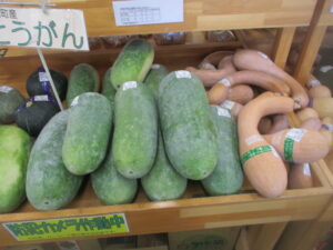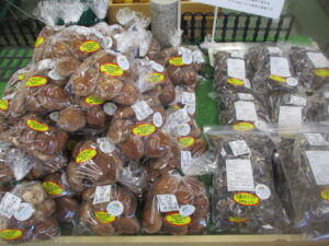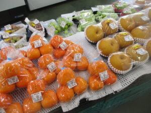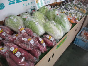 本日も大根、さつまいも、しいたけなどの地元野菜に、りんごやぶどうといった果物類を入荷しております。