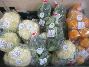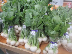 本日も地元新鮮野菜を豊富に入荷中! 白菜、大根、ブロッコリー、かぶなどたっぷりと並んでおります。