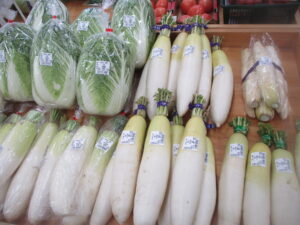 本日は白菜、大根、にんじん、ネギなどの地元野菜を入荷中です。