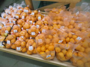 旬の果物では、みかんをはじめとして伊予柑、ポンカン、きんかんなどの柑橘類が種類豊富に並んでおります。是非お好みの品を手に取っていただければと思います。