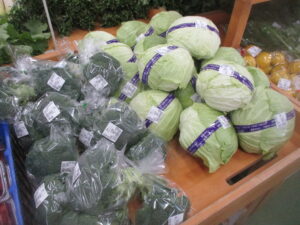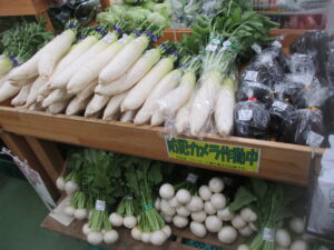 本日は白菜、キャベツ、大根、かぶ、長ねぎ、たけのこ芋、菊芋などの地元野菜を入荷しております。