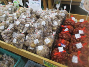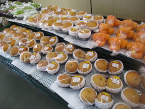 本日も新米や地元野菜、果物類を豊富に取り揃えております。