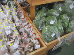 地元野菜では、小松菜、ニラ、みょうが、さつまいも、ブロッコリー、栗など、本日も種類豊富に入荷しております。