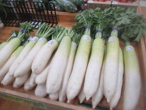 白菜、大根、キャベツ、ブロッコリーなどの野菜の他、果物ではミカンなど柑橘類を入荷しております。