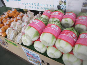 地元野菜では大根、キャベツ、かぶ、さつまいもなどを入荷しております。