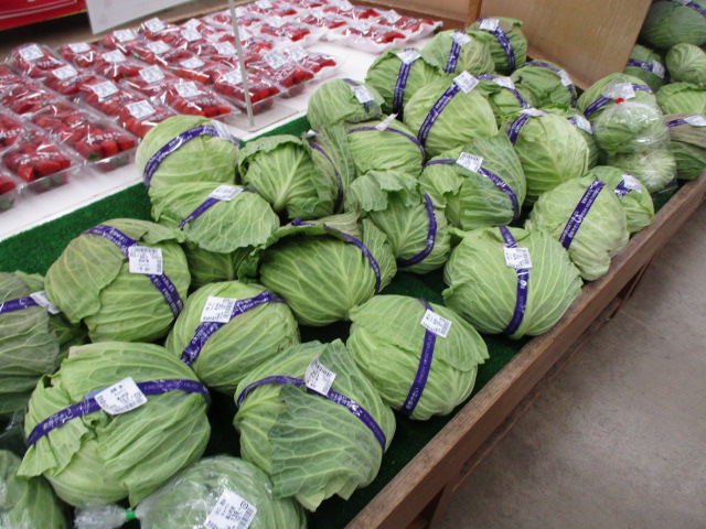 こんにちは。嵐山町産キャベツ入荷しました。また、川島町のいちごも入荷!皆様のご来店お待ちしております。