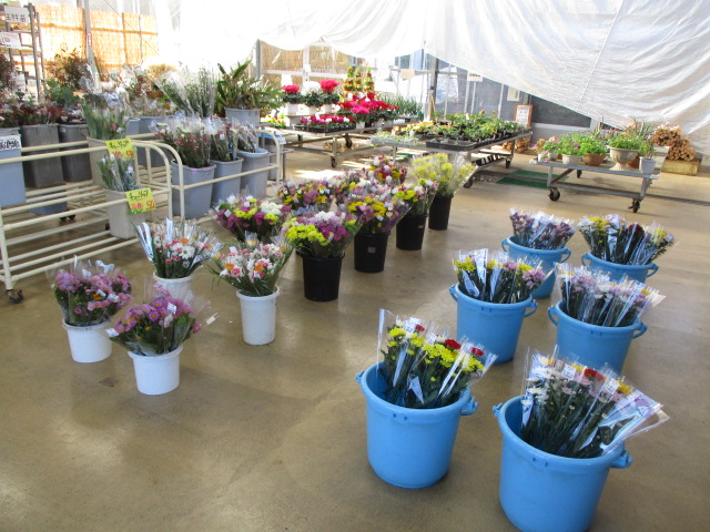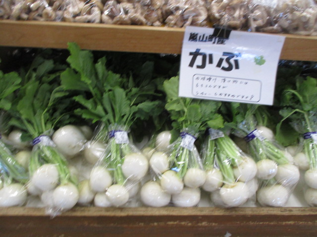 本日も嵐山直売所には地元産の白菜、かぶ、ねぎ、しいたけ、ほうれん草、大根、さつまいも、菊芋、里芋、人参、カリフラワー、みかん、ヤーコン、フラワーセンターには切花を取り揃えております。