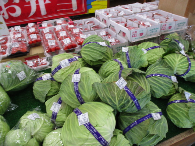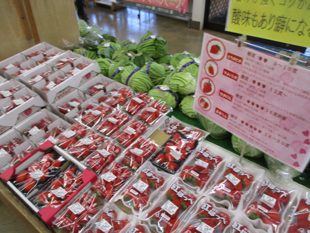 おはようございます。本日もキャベツ、人参が大量入荷しました。ふきのとうやのらぼうな、ほうれん、小松菜も入荷しました。どれも嵐山町産です。川島町産のいちごも販売中!美味しいので是非ご賞味ください。外にてパン屋のかすみ草がこだわりパンを販売。また嵐山町人気のやきとん「よしんち」がやきとんを販売 お知らせ・・・2月28日(土)は米の特売日、3月14(土)、15(日)は年度末感謝祭を実施いたします。 皆様のご来店お待ちしております。
