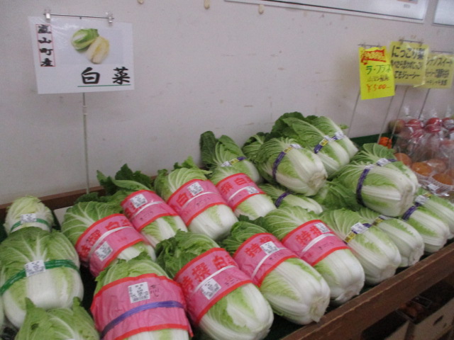 おはようございます。本日も新鮮地元野菜が入荷しました。白菜、大根、ねぎ、春菊や里芋を地元野菜で販売中。新鮮かつお求めしやすいので是非野菜は嵐山直売所をご利用してみてください。