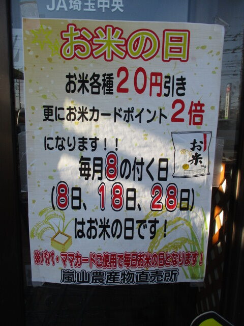 お米各種1kgあたり20円引きになります。また、お米カードのポイント2倍になります。