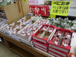 新鮮野菜、果物の他チキン南蛮焼き、やきとん、金沢カレー、焙煎コーヒー、23日のみ焼きそばを販売します。