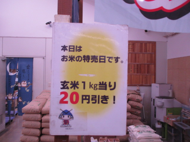 おはようございます。本日米の日で米の特売日1kgあたり20円引き(5㎏100円、10㎏200円引き)お米カードのポイントも2倍でお得な日です。嵐山直売所は美味しいお米を販売している直売所です!皆様のご来店お待ちしております。