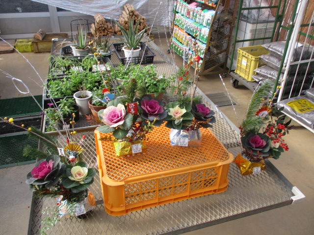おはようございます。本日はフラワーセンターにて正月用の飾りものや切花を販売中!また、新鮮冬野菜や切り餅も入荷。皆様のご来店お待ちしております。