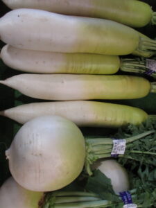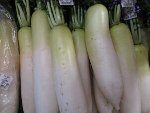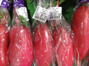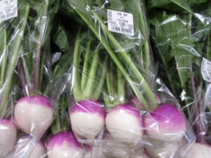 おはようございます!朝方は気温が氷点下で冬も本番となってまいりました!気温が低くなったと共に冬野菜が沢山入荷しております!大根や人参、白菜、ネギ、カブ、ブロッコリー等々!寒くて体調を崩しがちなこの季節を栄養タップリな野菜を食べて乗り越えましょう!大きく丸々としたカブの様な大根は「聖護院大根」と言い煮崩れしにくく、味がしっかり染み込む事が特徴の大根です!煮物やおでんが美味しいこの季節に是非ご賞味くださいませ!