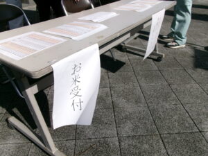 お米ご購入の方は店頭にて受付し、レジでお会計の後、店舗を出て右の受渡所でお米を受け取ってください。