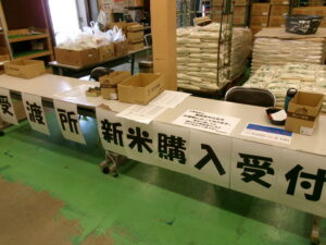 店内お米コーナー隣で受付、引渡を行っておりますのでそちらにお声かけ下さい。