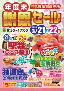 また、3/21(土)~3/22(日)は吉見直売所「年度末謝恩祭」を開催します!