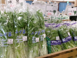 さつまいも、小松菜、かき等季節の野菜いろいろございます